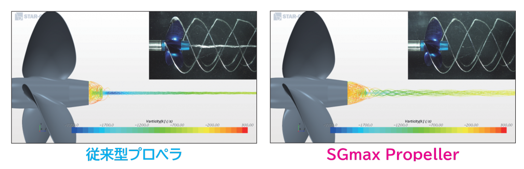ハブ渦が従来型プロペラと比較し微弱化しています。